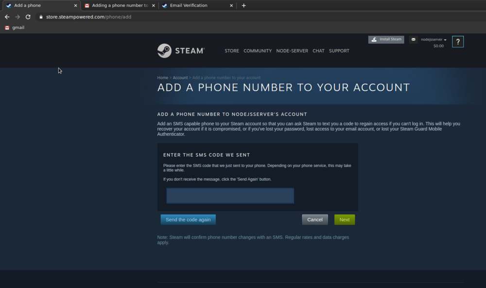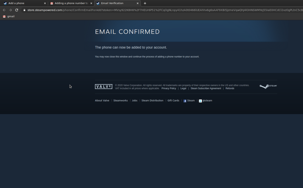 the state email verification hangs. The coded module for steamstore, does not work, simply and error and nothing else