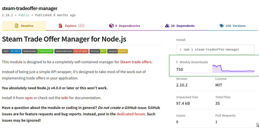 I am passing to tradeofferManager instance steam-user and steamcommunity. But I log in with steamcommunity.