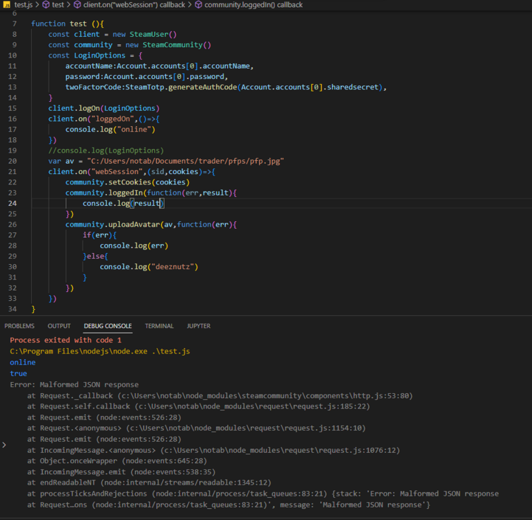 Bellow i have some code, i took the FormData: from your steamcommunity files and just changed the values to match mine. the headers are then the same as any other request i send to steam with the cookies of course taken directly from the browser (i copied and pasted the stesssionid to the formdata: one ) however i get a 302 im not sure why can you help?