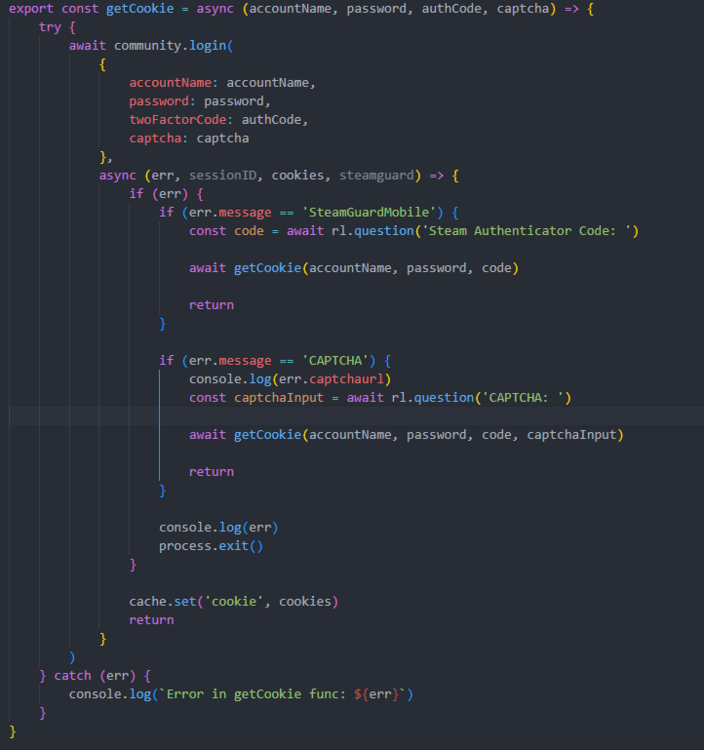 HI i've tried to call function like on first screenshot and await didn't work, second screenshot is called function, readline also sync(readline-sync package)