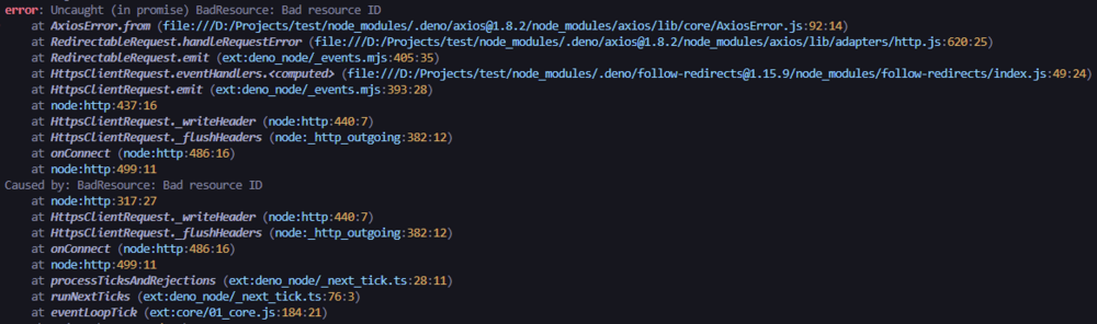 For instance, this code works perfectly fine in Node.js, whereas in the Deno runtime, it throws an error.